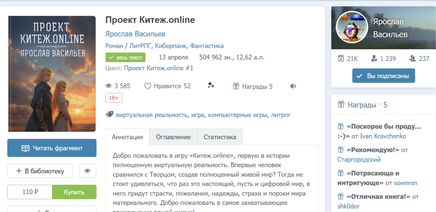Автор делает чего хочет. Выкладывает откровенно сырые тексты за деньги, химичит с ИИ, банит все критические комменты, не открывает скачивание купленных книг и т.п.