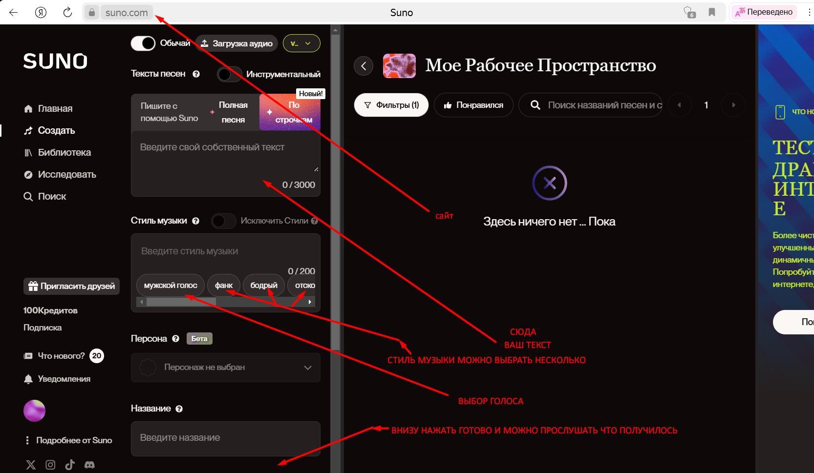 А в Suno, не пробовали закидывать? Там и голоса и стиль музыки можно подобрать
