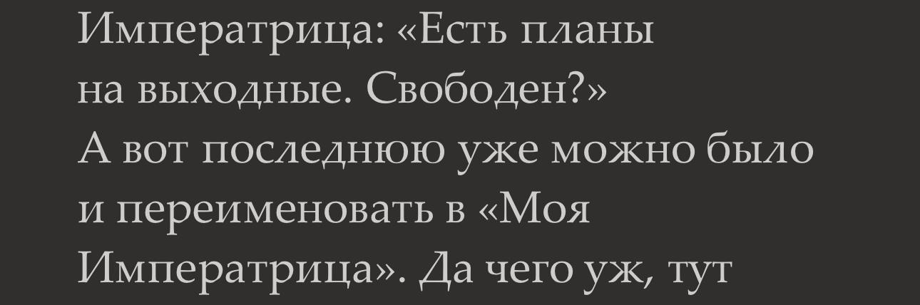 Из-за вышеописанного очень сложно представить поведение русского Императора. Единственное что мы знаем про него, так это что он благоволит простолюдинам(со слов князя Уварова). По ощущениям все будет не просто и либо завертится интрига, либо начнется сильное давление на гг.