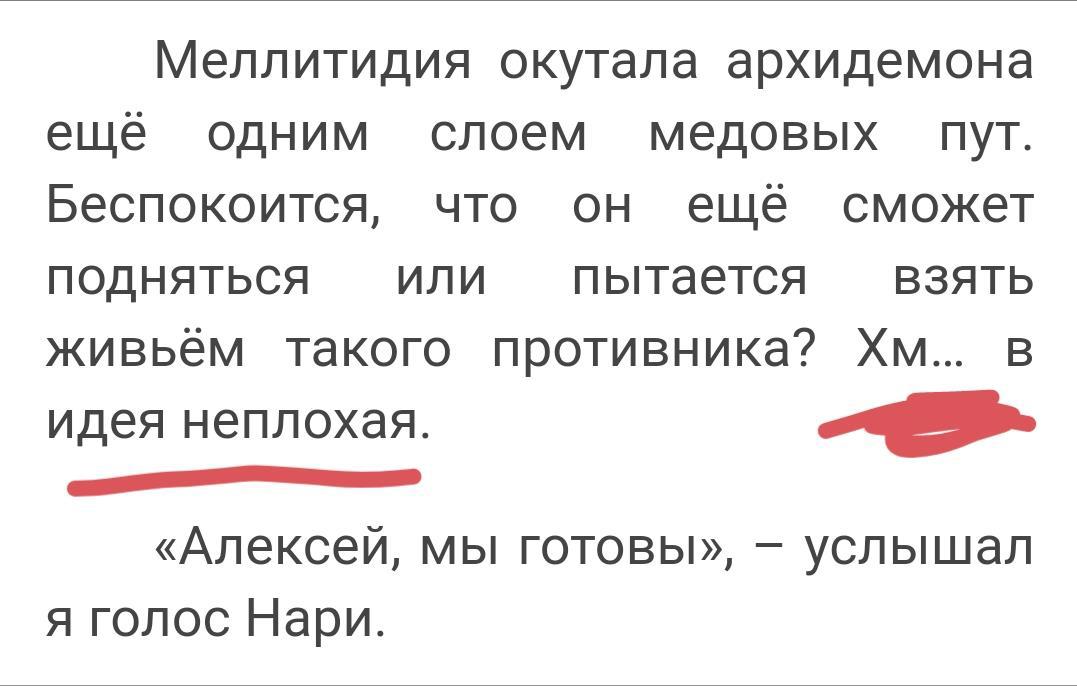 Нууу... Как обычно начнём новую неделю с очередной интриги (как мы и любим), ведь встреча Алексея с Сель Эром требует БОЛЬШОГО количества маны, а она ещё недостаточно восполнилась. Ну чтож, будем ждать следующую неделю с новыми увлекающими главами) Кто знает, может к следующей неделе мы и накопим нужное количество маны на ультра-легендарное заклинание "Созыв двух главных героев двух циклов в одном месте, а именно, попрошу заметить Алексея, и тараконо-человекоподобного Тес Сель Эра, который (я успел уже немного забыть) зачем то ищет Алексея"?) Лично я буду надеяться, что это событие будет по правде легендарным, либо придётся опять же ещё немного подождать, что скорее всего более вероятно) На что я тогда пожелаю Вам, Сергей, прилива сил и творческого настроения.