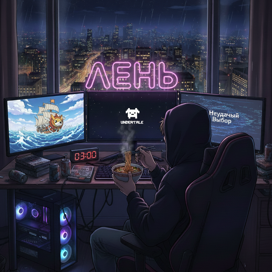 Эх... как говорилось в моём девизе: лень — это навсегда. Если бы я мог, я бы не работал. Давали бы мне каждый месяц по 150 тысяч рублей — вот это была бы жизнь! Ничего бы не делал, только сидел дома, играл в игры, смотрел сериалы, аниме, кино и читал бы мангу или другое развлекательное чтиво.