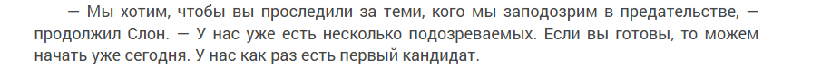 К тому же, как-то быстро следователи управились. Всего за день (полтора) у них уже есть подозреваемый. Напомню, до этого все попытки Дана и его людей вычислить крота были безуспешными. Как-то вы слишком сильно занизили интеллектуальные способности Дана. Да же если прибывшие следователи супер пупер профессионалы.
