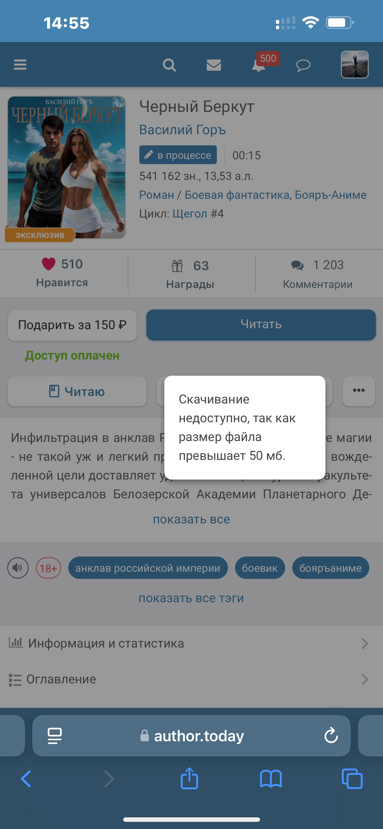 Здравствуйте, Василий. А можно как-то скачать главы, а то пишет что размер файла превышает 50 МБ. Книгу я купил.