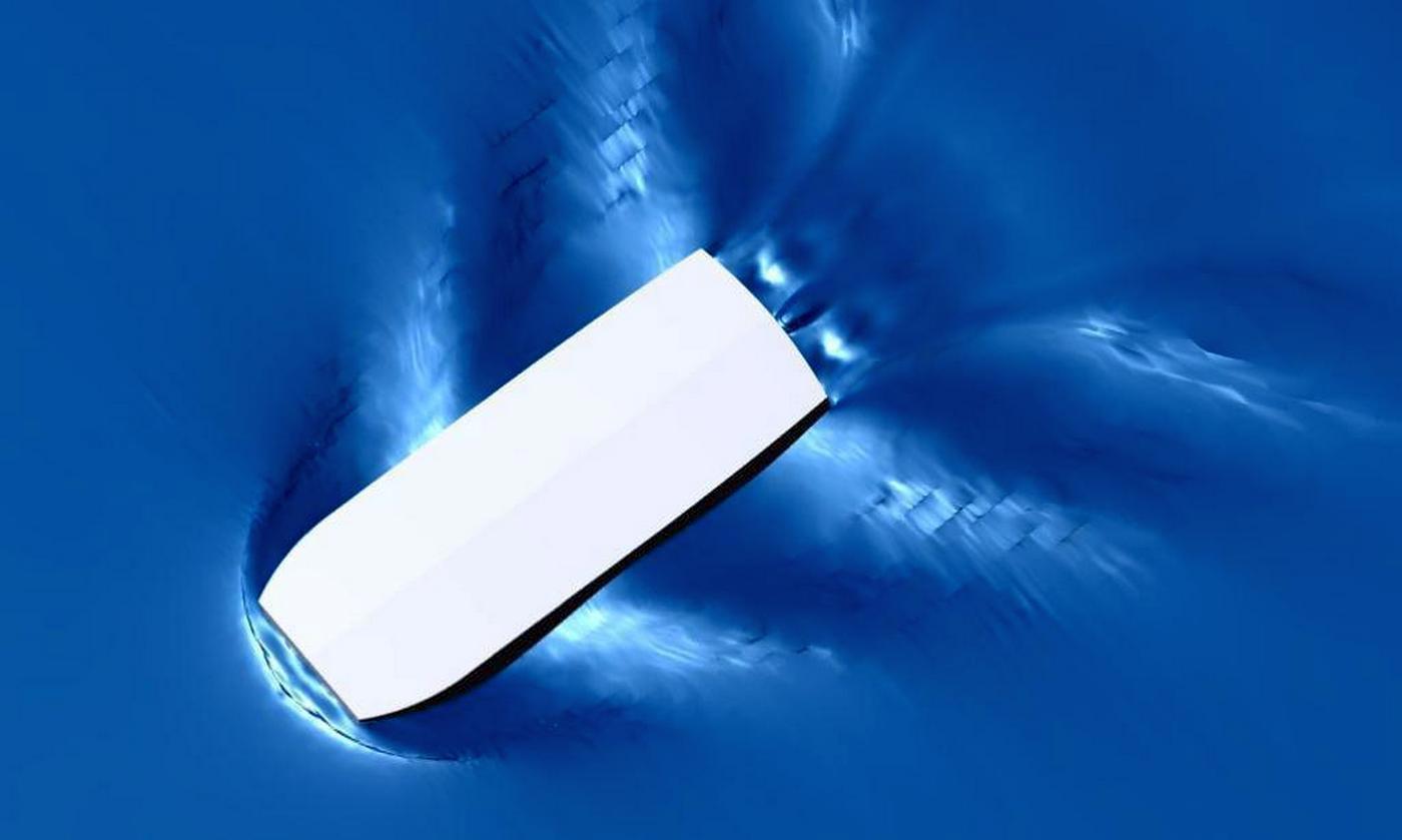 Да. С носа плавный "подзор", в корме два полутонеля под два винта (жёсткие требования к осадке в сочетании с высокими требованиями по упору винта и очень высокими по манёвренности). То есть в плане оно квадратное.