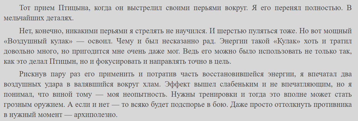 Цикл понравился и сюжет с миром очень даже, но вот момент упущенный не понравился, в первой книге вроде как появилась способность Воздушный кулак, а упоминаний нету от слова совсем. Как я ждал во второй книге при бое с огневиком что вспомнится но увы, а расписывалось то как 27 глава 1 книга: