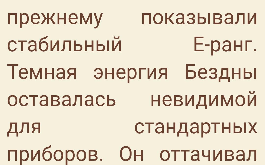 Чтиво интересное, но если честно так и не понял как прибор определил что у гг изменился ранг. Типо говорилось же что он не показывает изменение т.к энергия пустоты и всё такое. Ладно бы он как-то его подделал, или подтвердил другим способом. А тут просто раз и B. Видимо в этот момент Каос