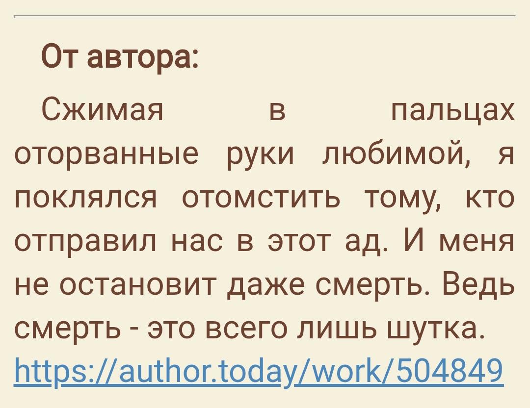 Та норм, вообще поражаюсь как у вас получается в таком темпе писать без потери качества. Все остальные кого читал кто каждый день выкладывают, на порядки слабее. Например норм пишет Игнатов, у него главы в два раза длиннее, но раз в неделю, и порой стихией воды злоупотребляет скажем так. Метельский тоже норм но тоже не каждый день. Короче никого не знаю кто бы так часто выкладывал и НАСТОЛЬКО интересно.
