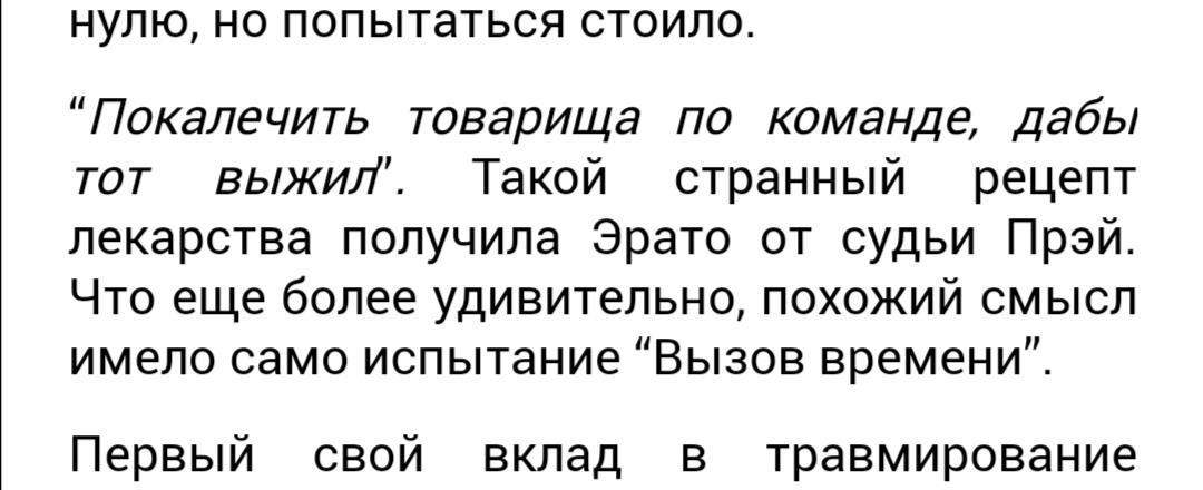 Здравствуйте. Кажется нашёл ошибку. 5 глава. Там есть следующий абзац. Либо я что-то не так понял, либо тут должно быть испытание "стремление к смерти", а не "вызов времени".