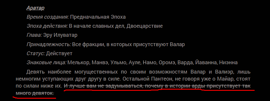 Очень приятно видеть таких ЧСВшных типов как Мелькор. Прям один в один Гильгамеш из фейта. Без дураков, украшение любой истории: яркие, опасные, величественные и дурацкие, одновременно умные и обоснованно глупые. Золото, а не архетип.