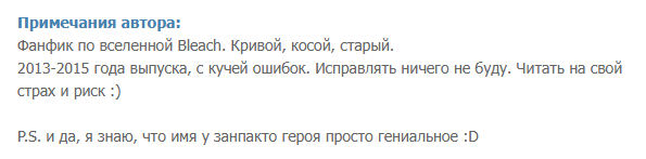 У нас с вами разное мнение касательно канона. Превозмогание Ичиго автор придумал потому что это сёнен, там по-другому не бывает. Но в том же каноне было ясно сказано, что пробуждение банкая за 3 дня - это занятие крайне сомнительное и Ичиго идёт на это, потому что выхода нет другого. А смерть для шикая он и в фанфике превозмогал, ему просто дали подсказку чуточку получше, чем "стань синигами или сдохни".