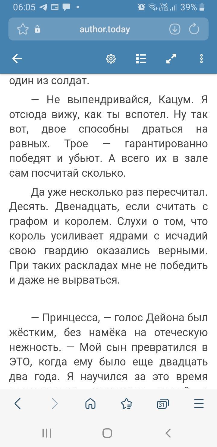 Лайк я поставил конечно. Но прочитав полтора тома ощущаю себя мышью, что кактус жрёт... сначала удивило почему так мало лайков за 3 года и законченный цикл, но теперь понимаю. Сам в голос вою от отчаяния и безнадеги читая эту историю, а если точнее диалоги, рыдая слезами (благо не кровавыми, ошибки если и есть то их немного и они незаметны). История интересная это бесспорно, хотя с учётом того как часто меняется вид от первого лица, следовало сразу писать от третьего, а то автор сам уже путается от чьего лица пишет и выдаёт истории других персонажей, персонажами которые эти истории по определению знать не могут. Но диалоги явно не сильная сторона автора читая 99% диалогов не покидает ощущение наигранности детского спектакля, благо хоть испанский стыд не разу не посетил пока. А вот проявление нежности это что-то с чем-то, нет я не против романтики, и не против делать приятно и говорить комплименты, не возражаю против ласковых прозвищ! Но! Когда эльфийка двух тысяч лет выдержки говорит "прости меня, пупсик!" Или малолетка говорит 30 летней тётке "девочка моя!" Это просто в голос выть хочется, что я и делаю... ну и стоит отметить временные рамки, когда история скачет туда сюда во времени. Это тоже не очень приятно. Примеры приводить не буду, ибо это спойлер. Ну а про "счастливые СЛУЧАЙНОСТИ" благо в эпилоге первого тома пояснили и гореть перестал от этих счастливых совпадений по 10 раз на главу. В общем и целом понравился этот кактус, вкусный, но колючий!)