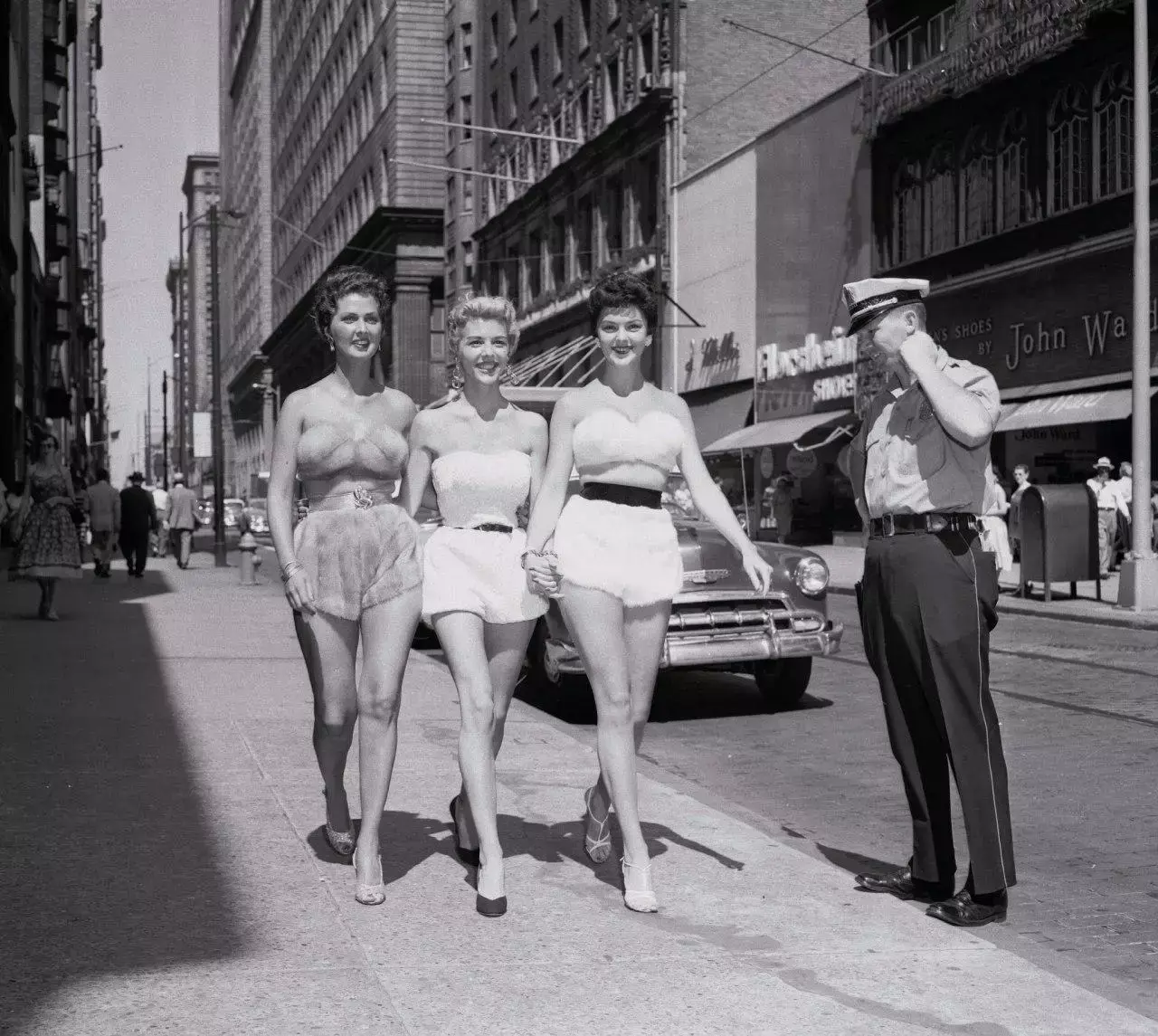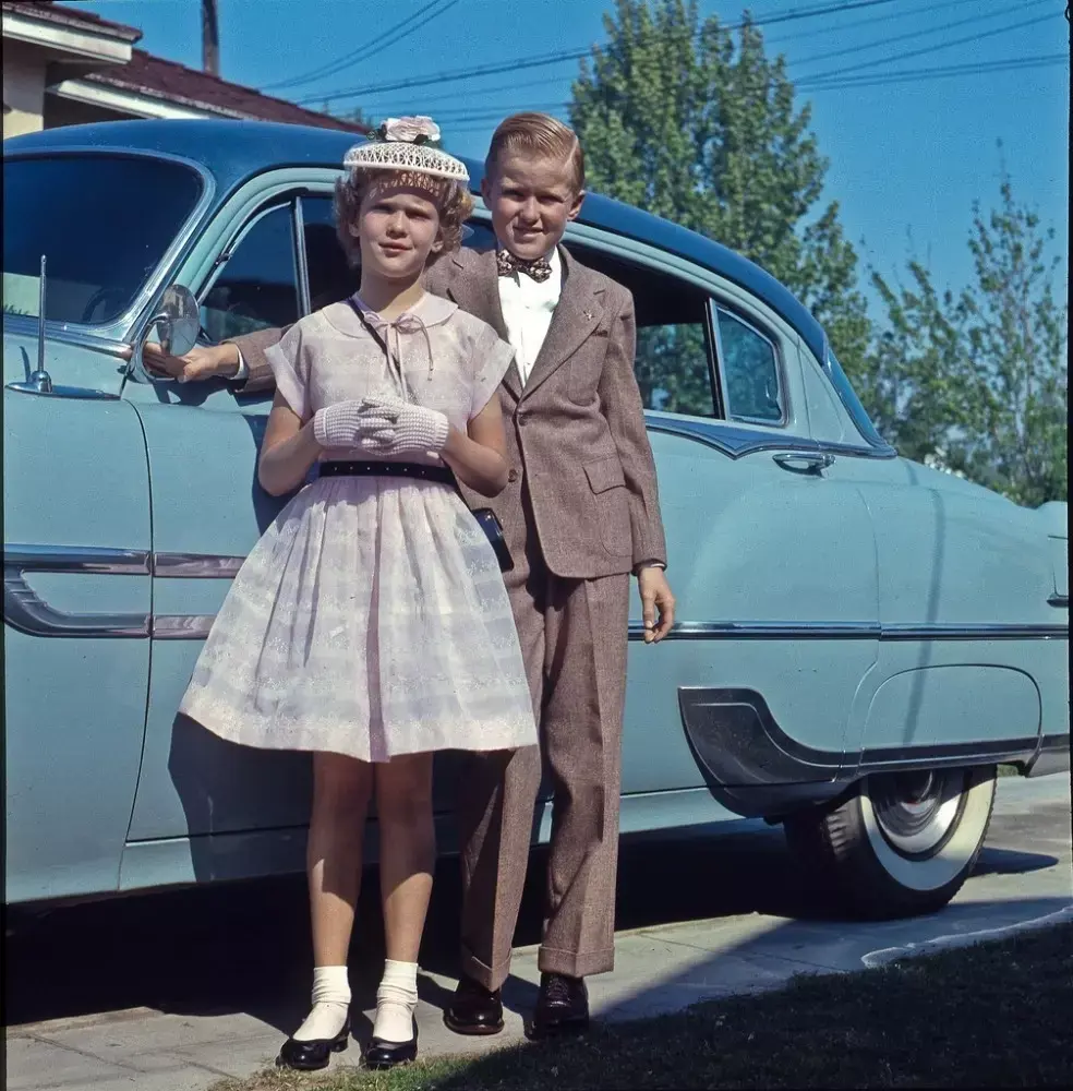Обратите внимание на моднявого молодого человека на фоне. Для середины 1950-х он очень стильно одет!