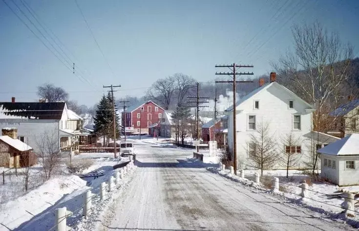 Хони Гроув, штат Пенсильвания, США, в холодный день после снегопада, 1951 год