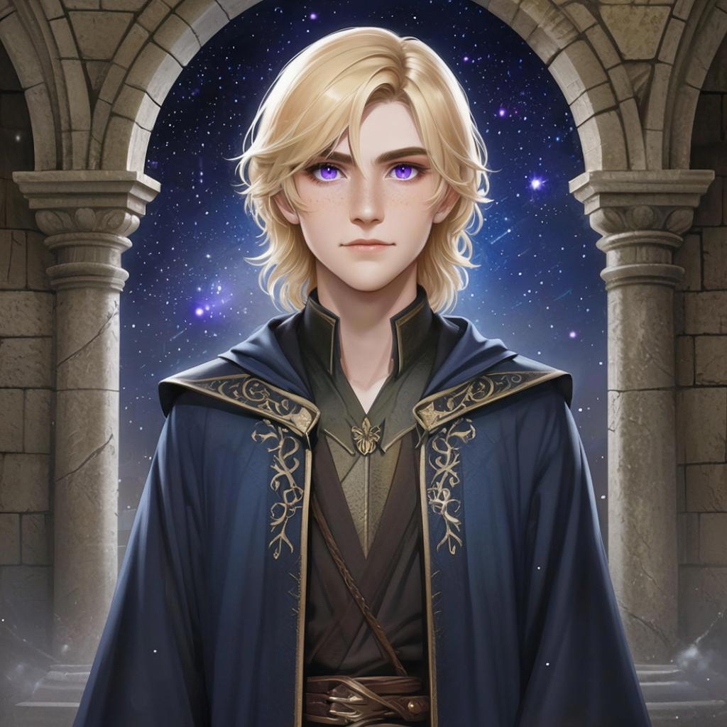 Да, мужской. Как указано в примечании, изображение примерное. Что получилось нагенерить. Был другой вариант, более-менее близкий к представлению в моей голове (обложка всё же ближе), но там герой выглядел слишком по-детски.
