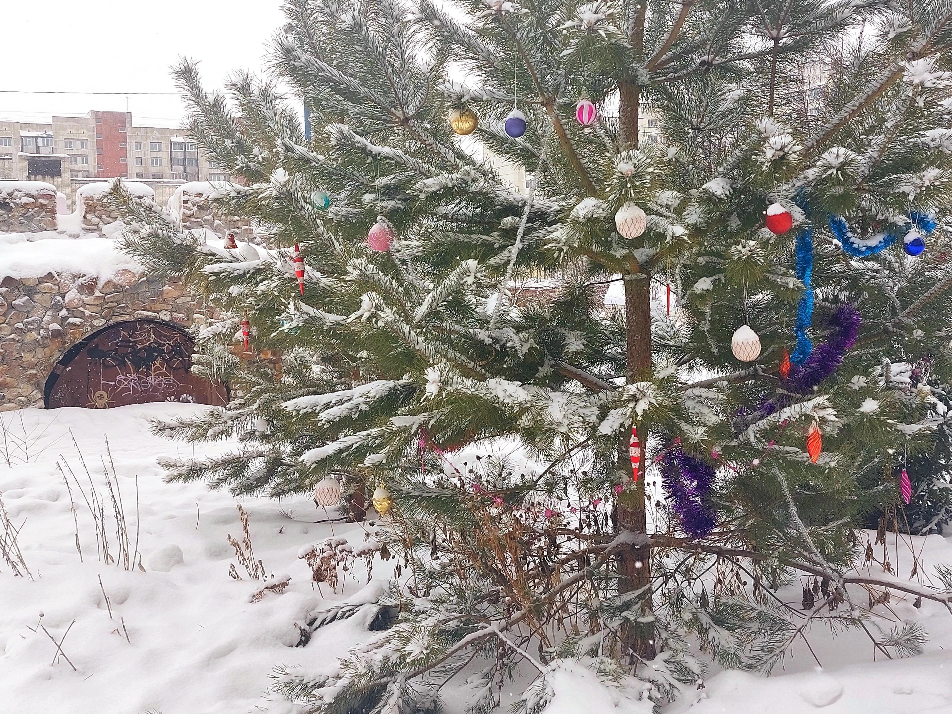 В одном из барнаульских дворов обнаружена последняя наряженная ёлочка!!!