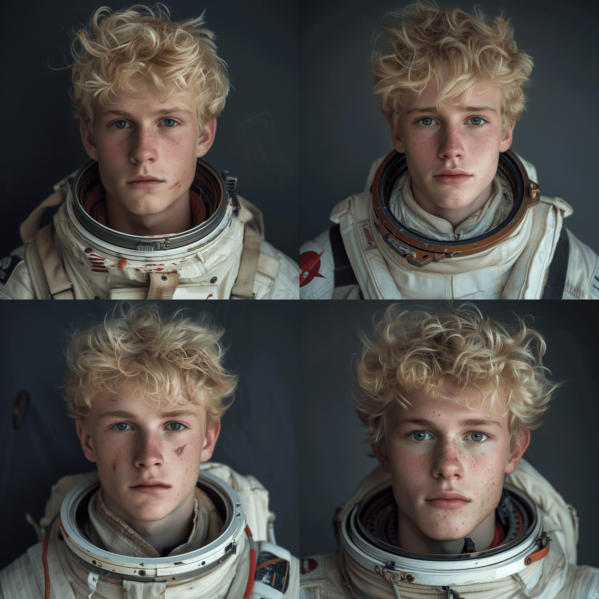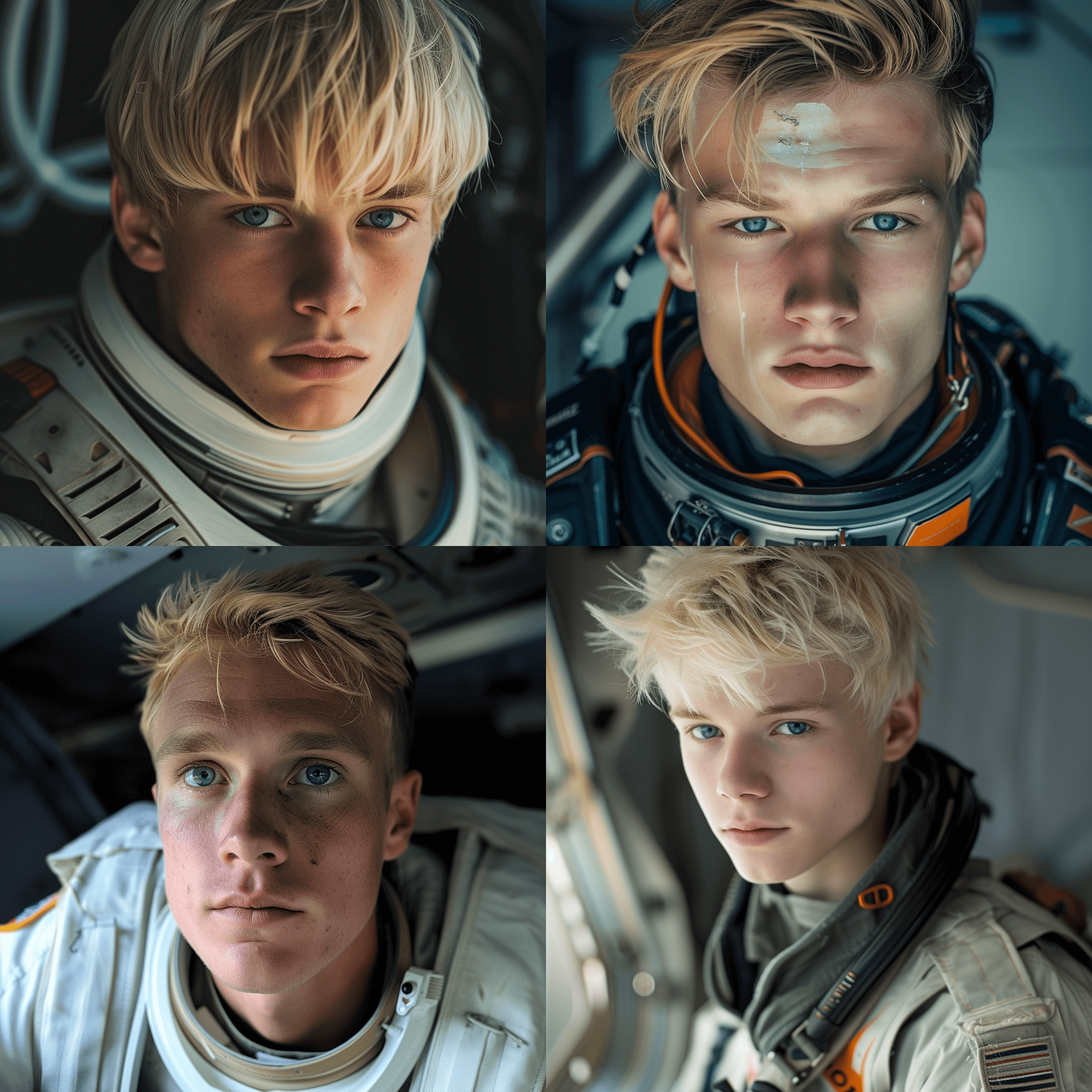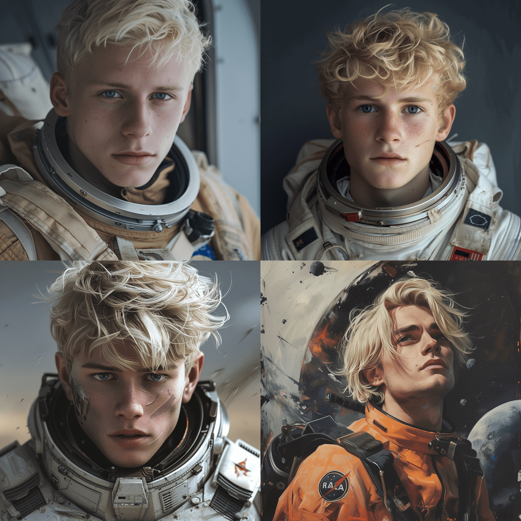 Сейчас разбираюсь с генеративной сетью ИИ Мidjourney для генерации изображений. Попытался что-то сгенерировать по описанию: "светловолосый молодой человек, универсальный пилот космического корабля, 23 лет с голубыми глазами на необитаемой планете после крушения космического корабля"