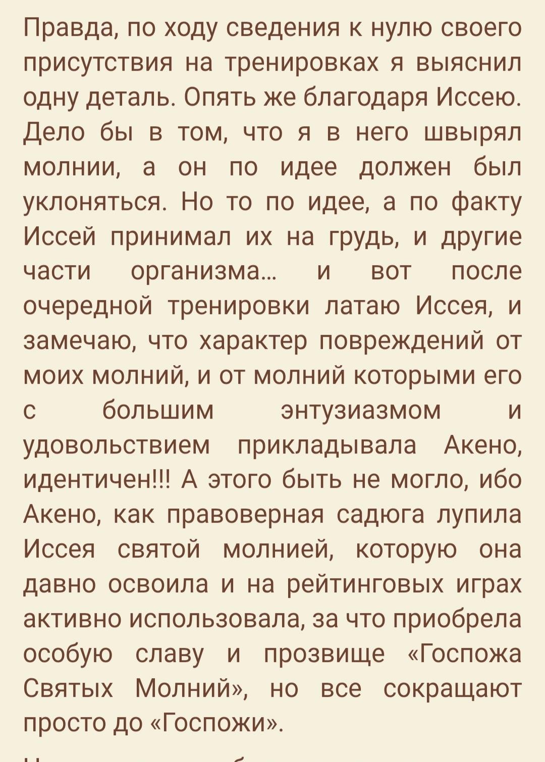Это противоречит словам гг. Более того, он настолько привык к условной молнии акено, что подставился под атаку схожую на молнию, тк банально по рефлексам хотел отбить.