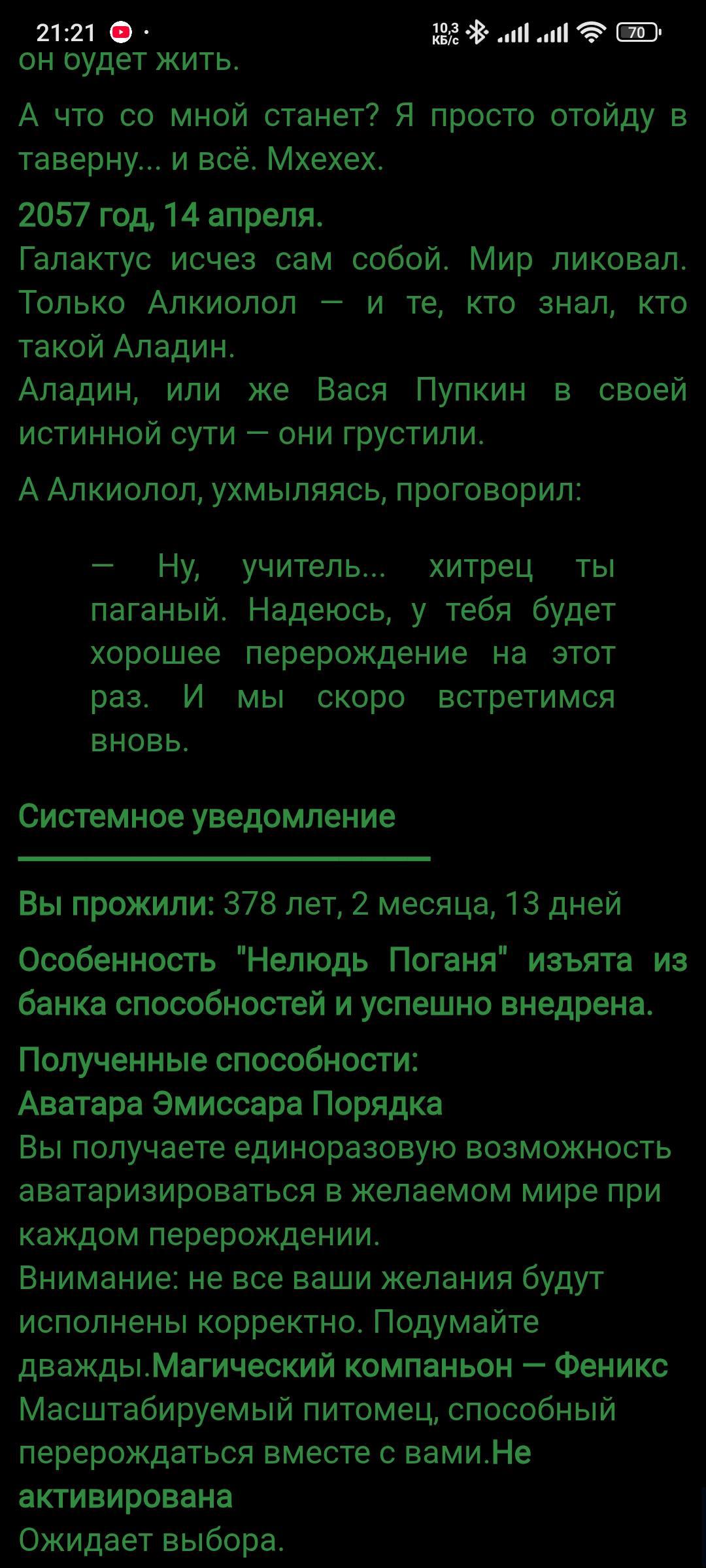 Ну что сказать интересное произведение, буду читать. Пока не до конца понятна сама система, что-то скачет проценты с синхронизацией. Много философии сам автор это подметил. Мне нравится больше описание окружающего среды героя, как оно описано, как потихоньку влияет воля в боях.