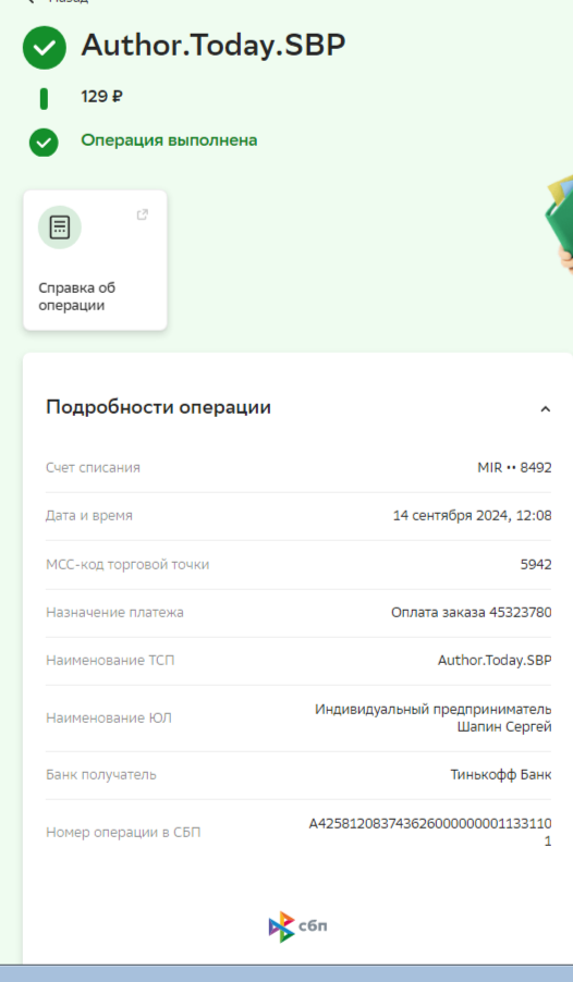 Если понадобится, скину банковский чек на 129р. с оплатой из Сбера по СБП