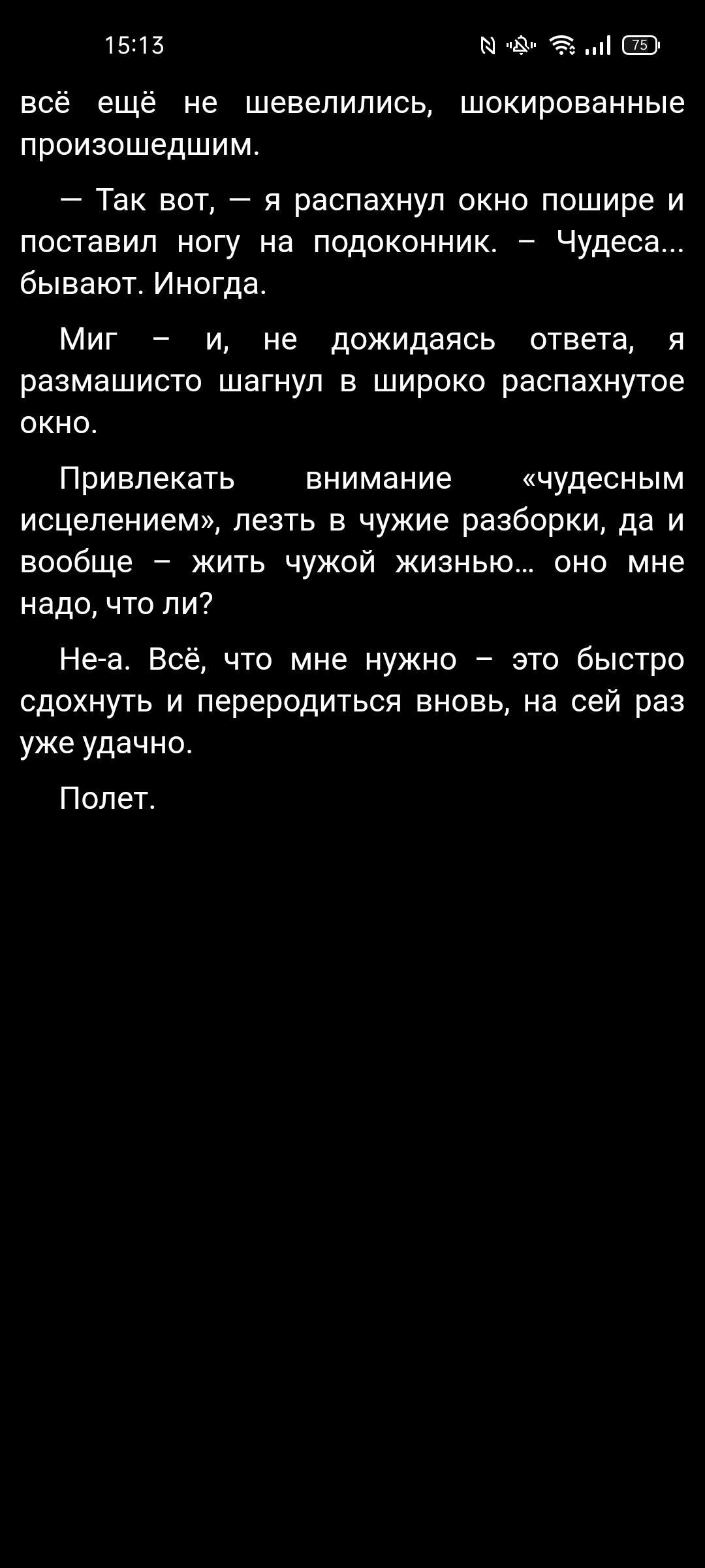 Автору огромнейшее спасибище и АВЭ!!! Увлекательный мир и история которая не давала нормально заснуть ибо читать хотелось ещё и ещё. Надеюсь будущие миры будут такими же увлекательными и весёлыми. Светлых дней автору и его музе