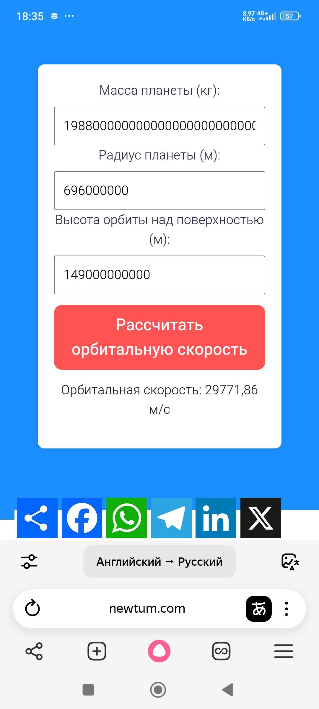 Для примера ниже дан расчёт орбитальной скорости Земли.