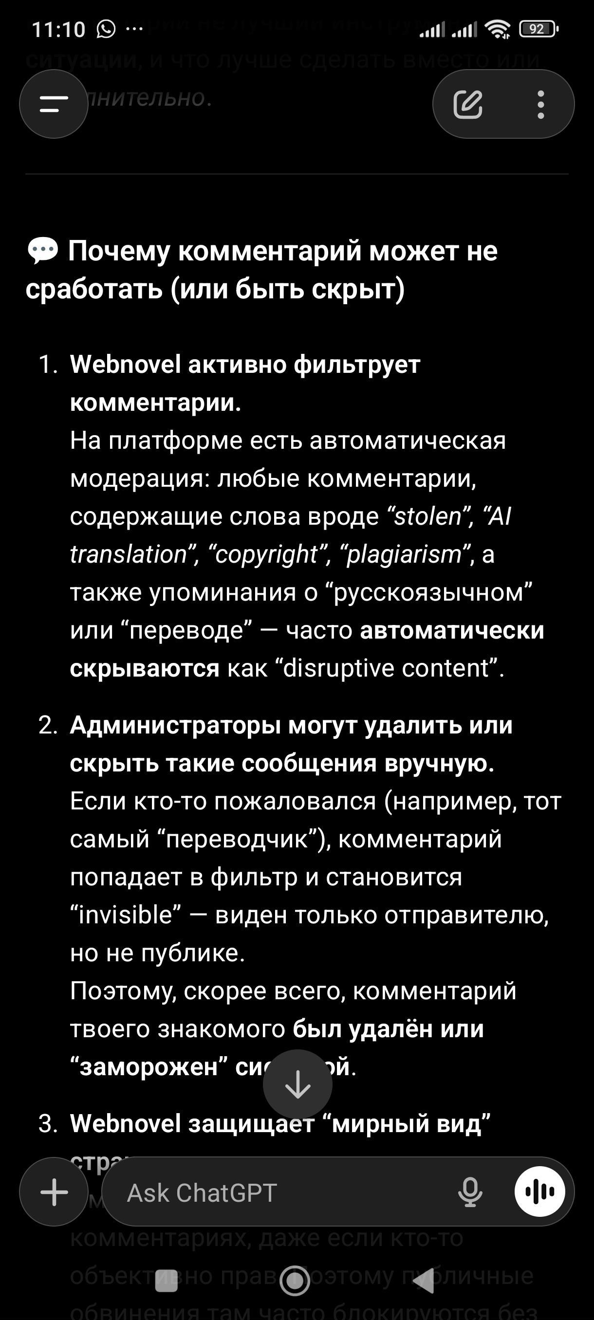 Интересно как именно определяют что нужно сделать комментарий невидимым в m.webnovel? Один мой комментарий не показывает, а некоторые показывает.
