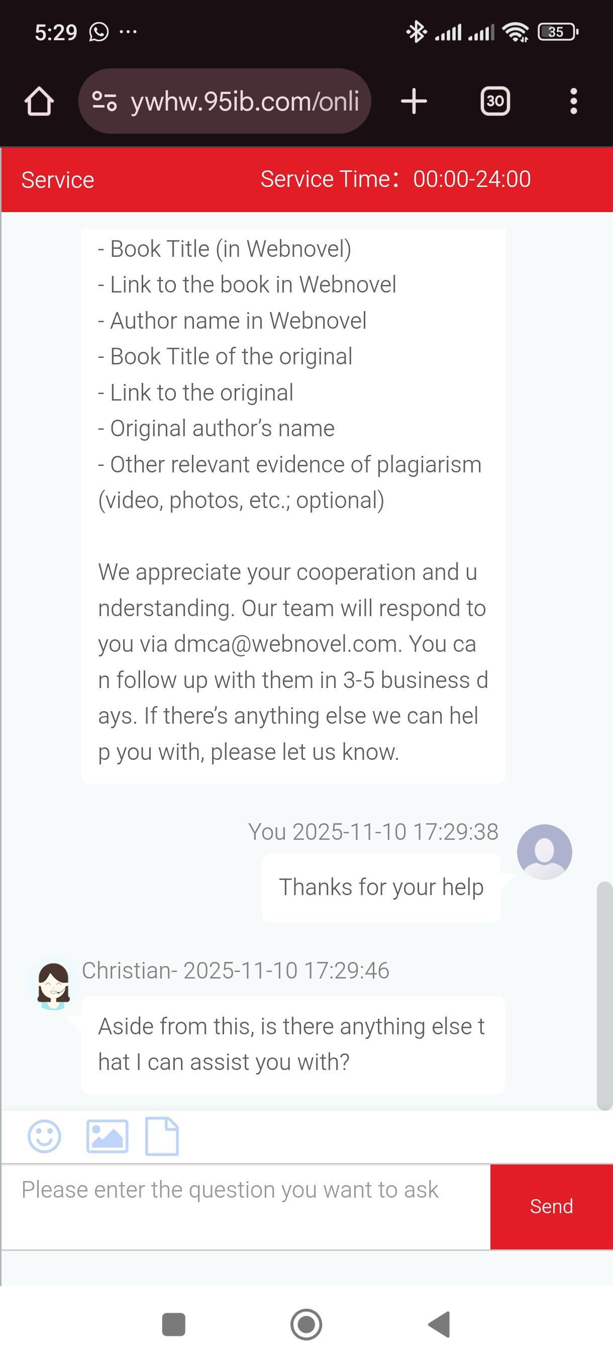 П.с. я спросил у online customer center насчёт этого и они сказали что этим занимается другой отдел и дали адрес почты dmca@webnovel.com.
