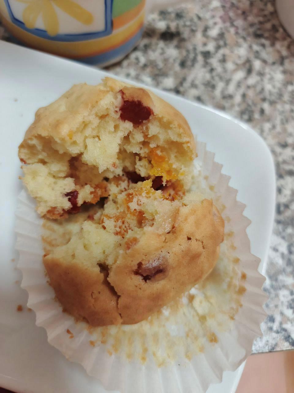 Кстати цедру всё же лучше мешать внутрь теста, возможно что из-за того что наверху цедра была частично кексы не поднялись. Технически одни должны быть вровень с бумажками.