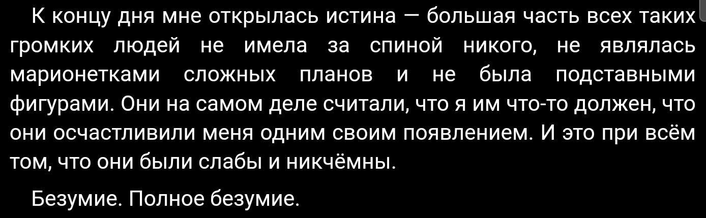 Глава отличная. Автор наконец-то вернулся к нормальному повествованию, вместо затянутого разжевывания подробностей поединков. Немного только выбился эпизод с отцом Великор. Я б на его месте тоже оскорбился предложением Леграда - это какая наглость обозвать его дочь "ресурсом"! Ну точняк, грубый варвар, настоящий нулевка 😂