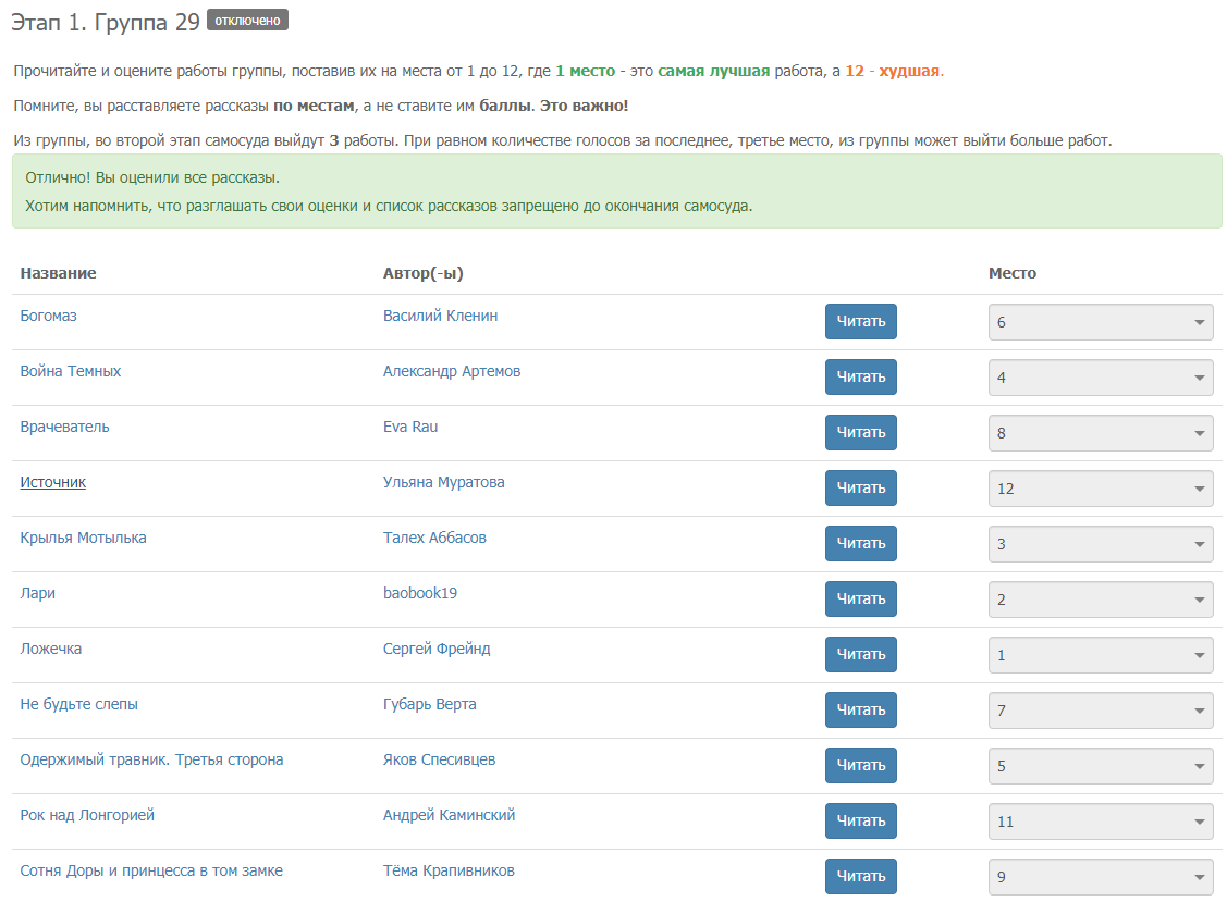 Ну и в целом, я удовлетворён своей рецензией. Она сразу показала, кто есть кто на арене конкурса: кто увлечённый энтузиаст, а кто зазвездившийся писака.