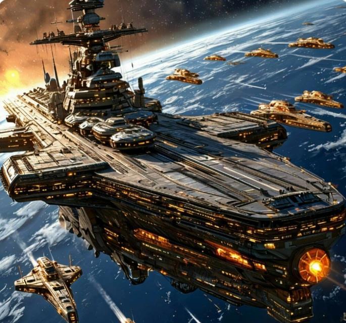 Там Крейсер,корабль обеспечения,3 корвета разведки.на лётной палубе истребители Космос-поверхность?