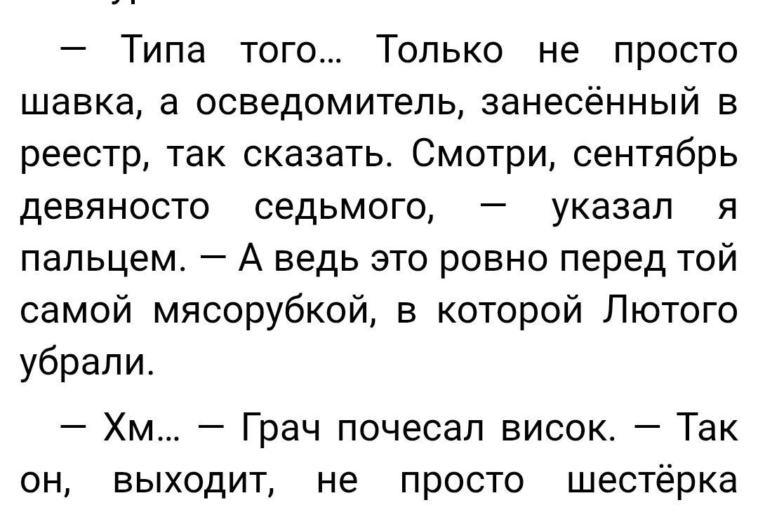 Добрый день. Спасибо большое аатору за прекрасную серию. С 10 сентября начал и уже жду проды. Захватило. А в 16 главе 5 части явно понятно, кто сын Лютого. Называть не буду, там чётко прослеживаются совпадения.