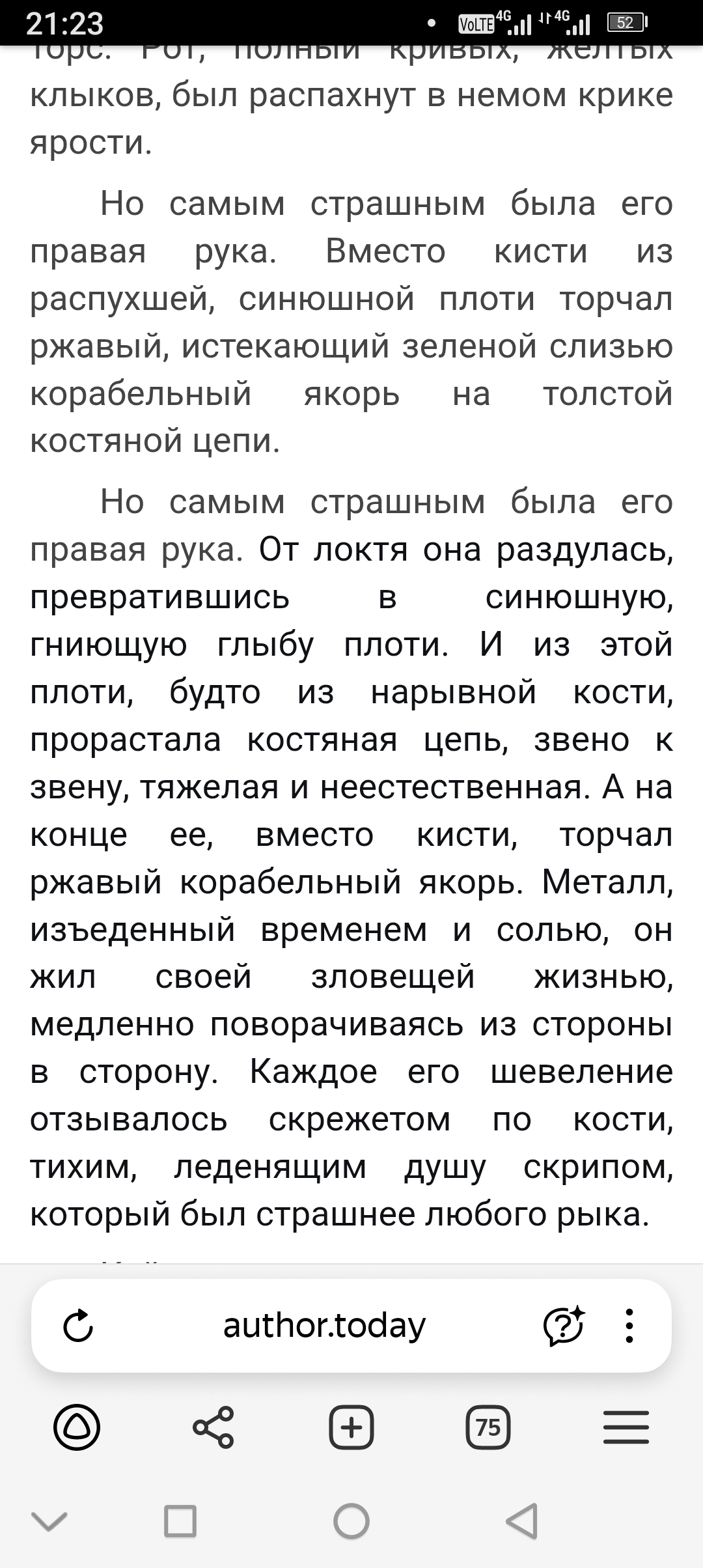 Написал(-a) комментарий к произведению Карточный мир. Том 3 Исправьте пожалуйста абзац про руку монстра. На картинке рука с якорем левая. И обзац повторяется
