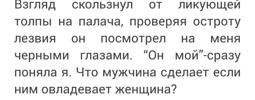 Но если серьезно, произведение мне понравилось, но я склонен считать, что палач видя ухудшение состояниие ведьмы не стал бы ей помогать, в надежде что и так все прикратиться. И стоило бы еще разок вычитать текст так как есть заметные опечатки. Ну и последняя притензия это прикрепленный к коментариию абзац, очень уж станно он звучит на слух