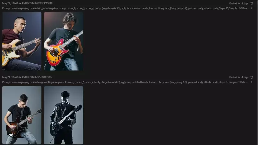 Вот вам буквально прямо сейчас генерация. Да, один из артов пошел по одному месту, второй довольно хорош. Ваша гитара -- на месте.