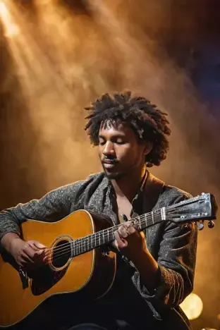 Prompt: Step into a captivating portrait capturing the essence of a musician, their fingers dancing across the strings of a guitar on a vibrant stage. Through the lens of a Sony α7 III camera, equipped with a 100mm lens set to a wide-open aperture of F 1.2, the background seamlessly dissolves into a tapestry of artful bokeh, allowing the subject to command the spotlight. The stage radiates with dramatic lighting, as spotlights cut through the velvety haze of smoke, creating a dynamic and immersive atmosphere. Employing the iconic Rembrandt lighting technique, the musician’s face and hands are skillfully bathed in soft, directional light, accentuating every passionate expression and intricate movement. Harnessing the powerful Midjourney v5 with photorealism mode, this image transcends mere representation, vividly capturing the musician’s unwavering talent and boundless devotion. With each strum of the guitar, the viewer becomes entranced by the artist’s undeniable passion, transported to a realm where music becomes a living, breathing entity.,Negative prompt: (worst quality, low quality, normal quality, lowres, low details, oversaturated, undersaturated, overexposed, underexposed, bad photo, bad photography, bad art:1.4), (watermark, signature, text font, username, error, logo, words, letters, digits, autograph, trademark, name:1.2), (blur, blurry, grainy), morbid, asymmetrical, mutated malformed, mutilated, poorly lit, bad shadow, draft, cropped, out of frame, cut off, censored, jpeg artifacts, out of focus, glitch, duplicate, (airbrushed, cartoon, anime, semi-realistic, cgi, render, blender, digital art, manga, amateur:1.3), (3D ,3D Game, 3D Game Scene, 3D Character:1.1), (bad hands, bad anatomy, bad body, bad face, bad teeth, bad arms, bad legs, deformities:1.3),Steps: 25,Sampler: DPM++ 2M Karras,KSampler: dpmpp_2m,Schedule: karras,CFG scale: 5,Seed: 0,Size: 768x1152,VAE: Automatic,Denoising strength: 0,Clip skip: 1,Model: realvisxlV40Turbo_v40Bakedvae,LoRA: greg_rutkowski_xl_2,casting shadow style v2