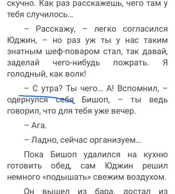 Нашёл в третьей главе. Мне кажется, что здесь надо или добавить «с утра не ел» или убрать «с утра?»