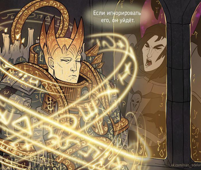 Фулгрим собрался скинуть свою "несовершенную" человеческую оболочку? Хм, а в авторской интерпретации Фулгрим который на момент событий главы руководит Легионом Детей Императора это душой искомый Фулгрим или Демон заточивший Душу примарха в его портрете? И судя по всему груши не будет, так что шутка ушла мимо...