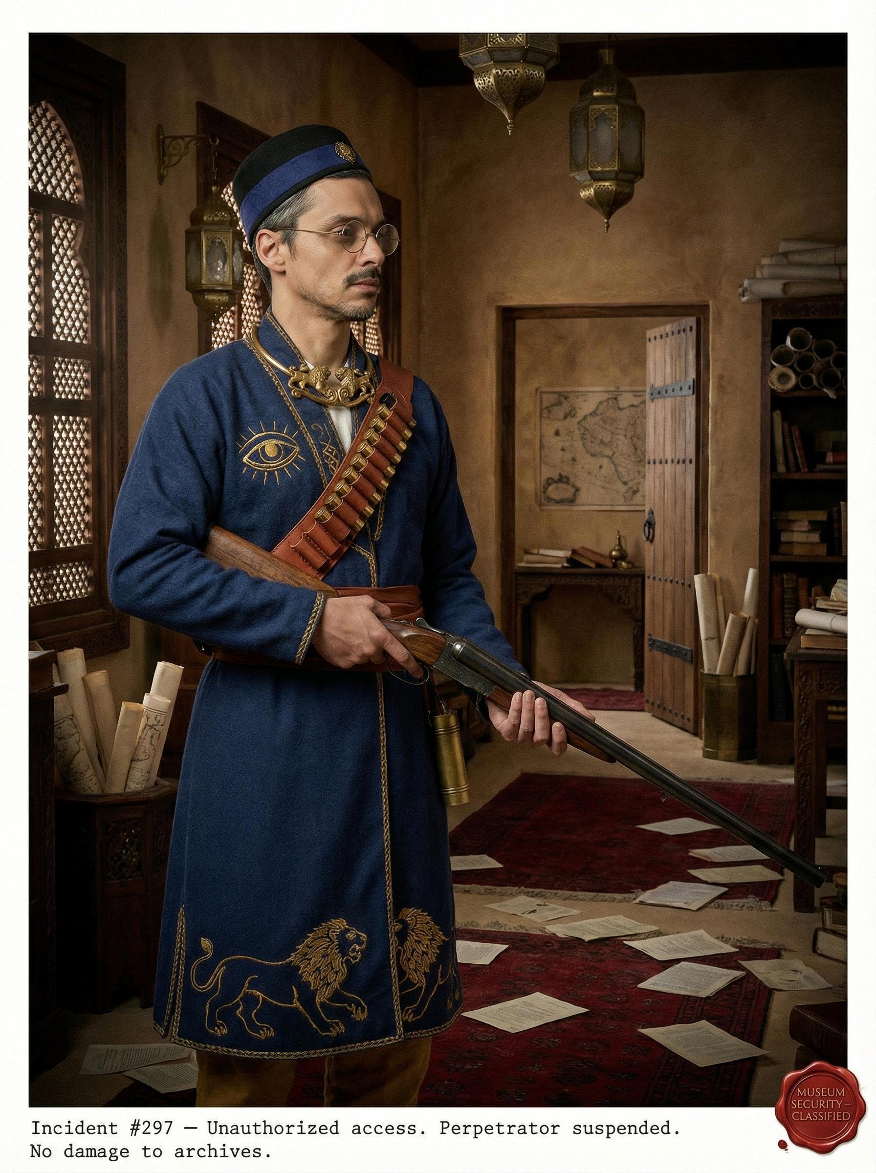 Были свободные крутки, была необходимость в персонаже - хранителе музея, архивариусе и библиотекаре, к которому игроки постоянно ходят за справкой, был ваш "парадный" портрет.