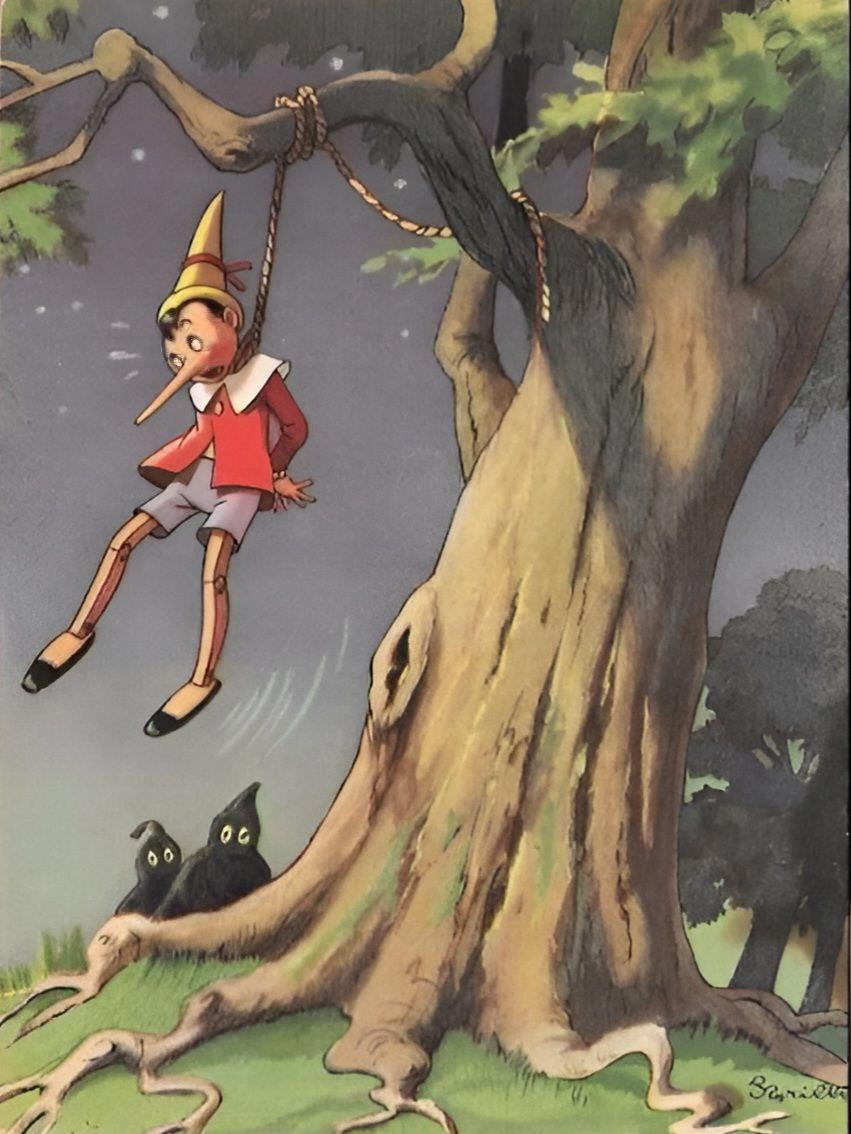 Изначально Карло Коллоди, написавший "Приключения Пиноккио", не собирался превращать своего героя из деревянной куклы в настоящего мальчика. Пиноккио ожидала судьба быть повешенным Котом и Лисой на дубе, в назидание всем детям, которые врут и не слушаются старших.