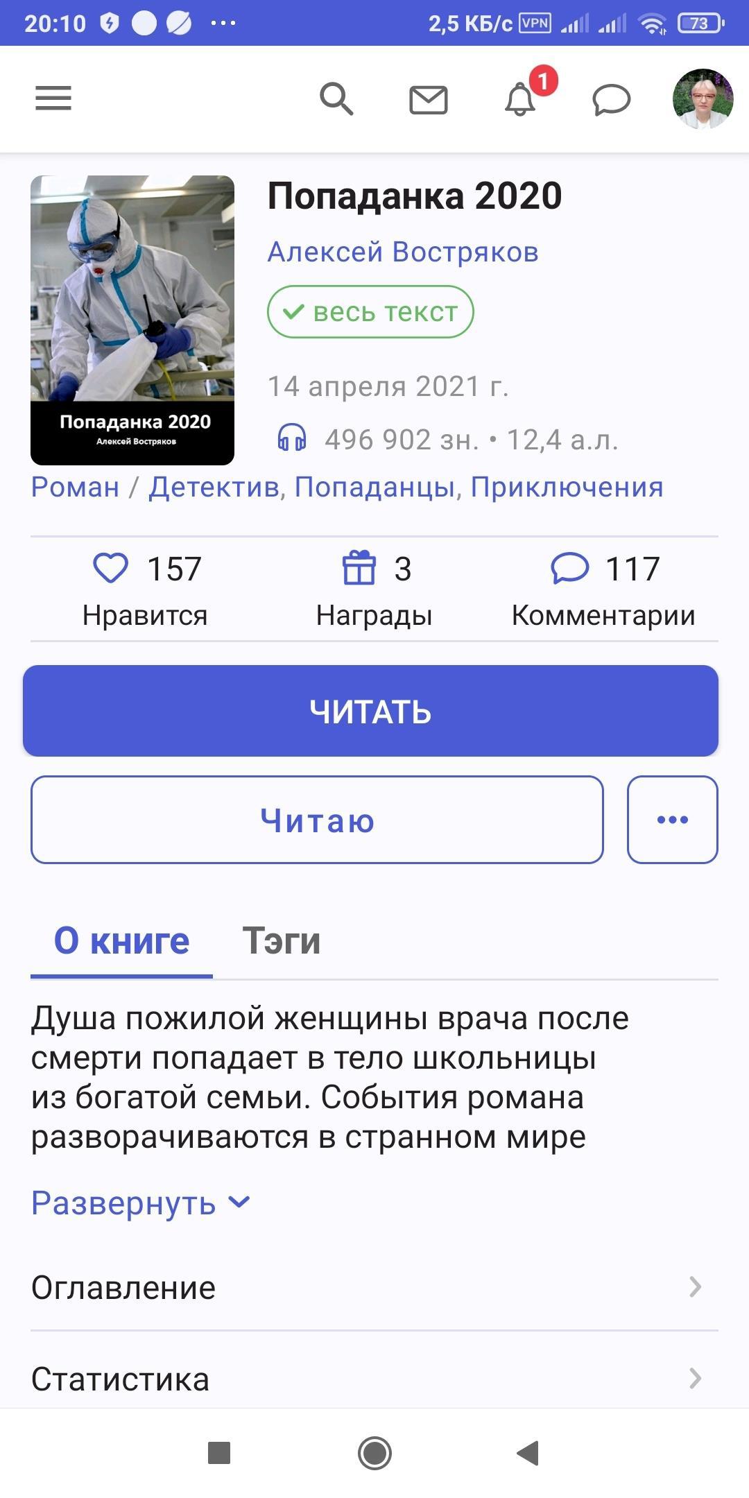 Написалa комментарий к произведению Попаданка 2020