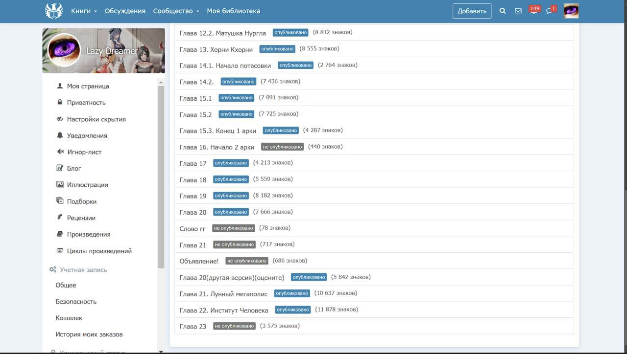 Нуу, я не могу назвать себя полноценным писателем. Мне больше нравится читать. Во время чтения романов и фиков, в голове не могут не рождаться идеи. Нууу, в провальных попытках эти идеи реализовать я и начинаю своё писательство.