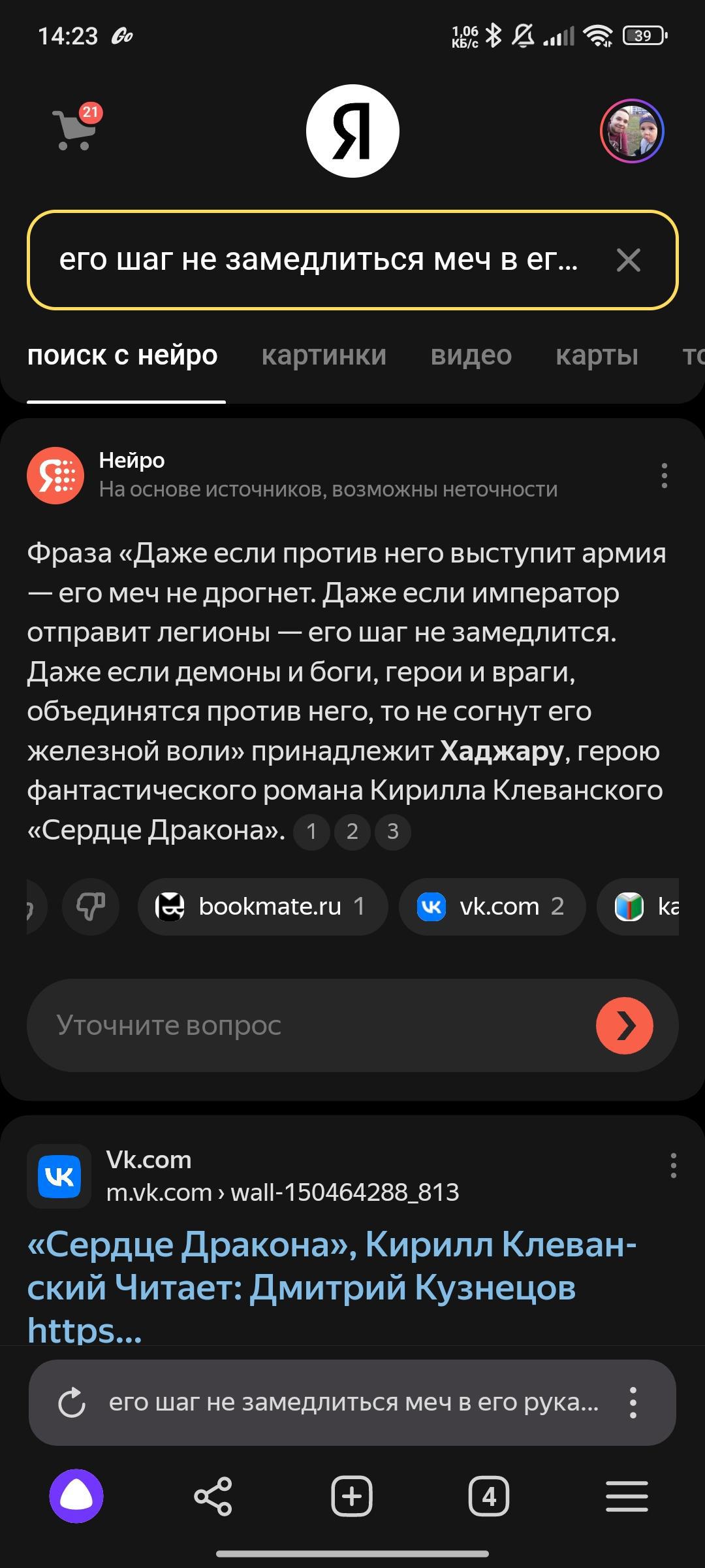 Написал(-a) комментарий к произведению Сердце Дракона. Финал целиком. Цикл завершен Интереса ради, забил цитату. Даже Яндекс знает))