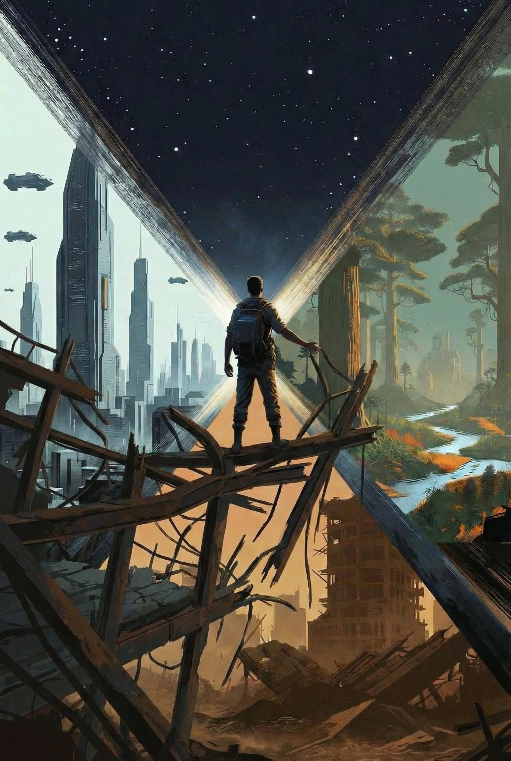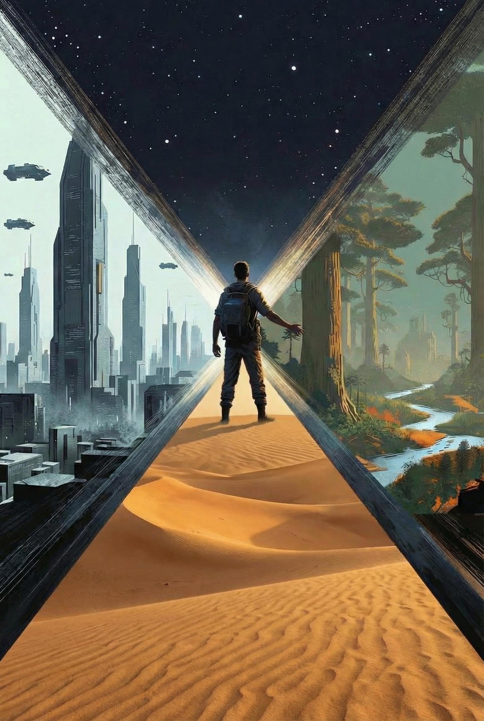 Альфа родился не внезапно — его выдохнуло само время. В тот миг, когда два потока встретились: один — тянувшийся из будущего, как тонкая серебряная нить, другой — нисходящий из прошлого, медленный и густой, как тягучий янтарь. Они не создавали искру — они сплетались, и из этой спирали поднимался новый узел сознания.