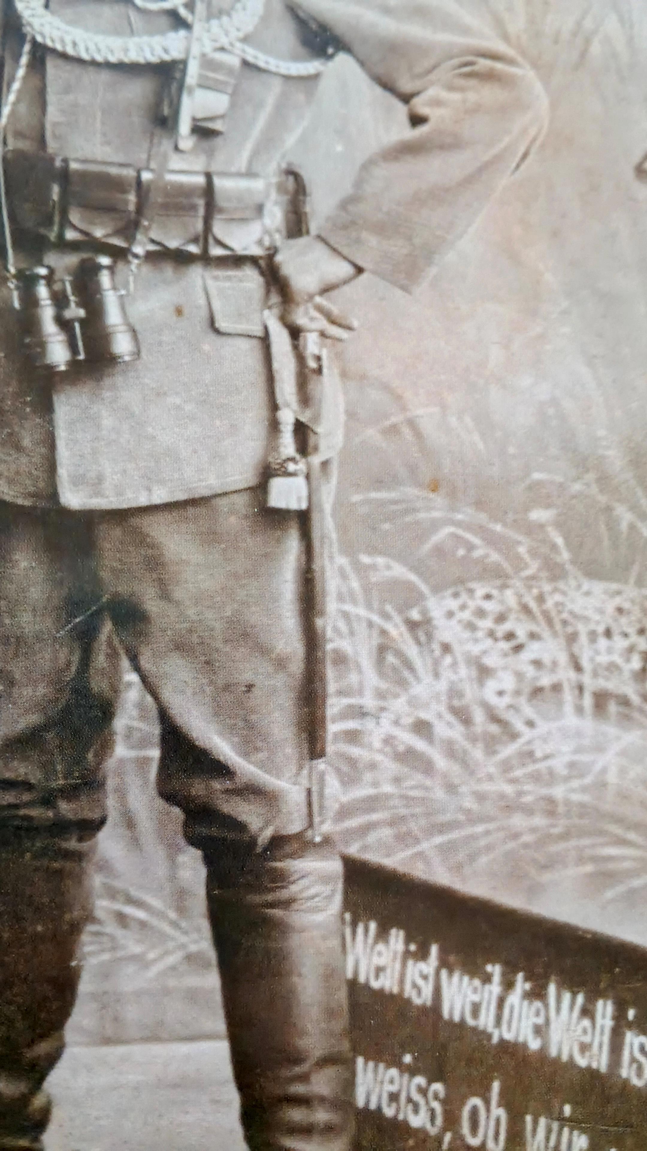 Немецкий снайпер 1915 год. НЕ могу понять, что за футляр у него слева. И удивляет тесак в ножнах. Патронов зато набрал богато.