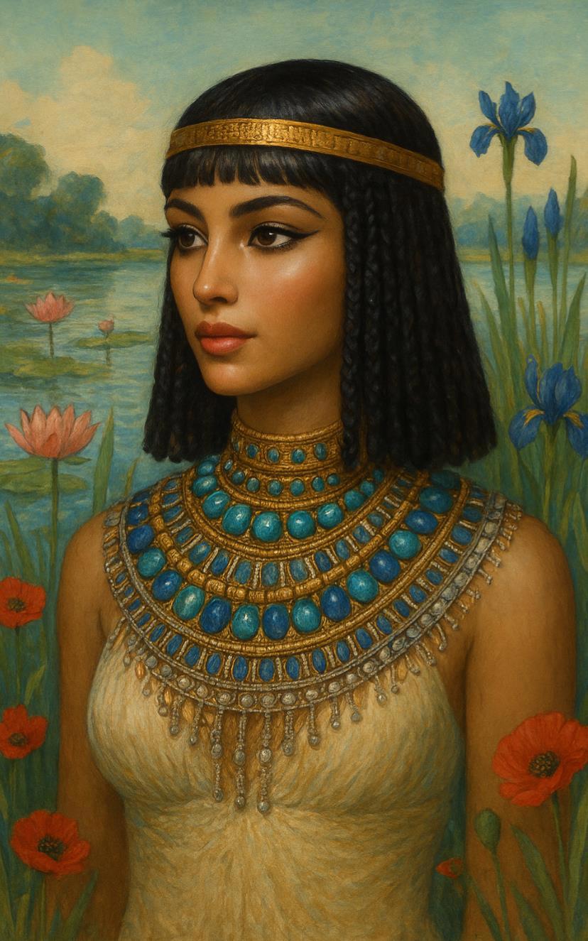 На счет картинки сгенерированной искином, изначально сеть выдавала что-то типа молодой Анджелины Джоли на запрос нарисовать молодую и очень красивую женщину из древнего Египта. Но у Нефрет совсем нет дерзости Анджелины. У нее действительно типаж либо Натали Портман либо Моники, последняя подходит больше.