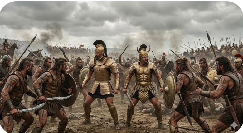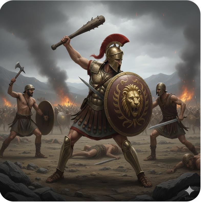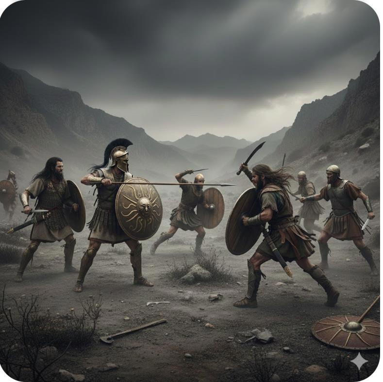 Создать имидж: батальная сцена спартанцев против фракийцев и ид и тп. тип щитов кол-во воинов. Одежда на воинах так далее. Чем четче детали тем лучше картина. Я увы ни разу ни художник баталист или историк. Мне попросту не хватает  словарного запаса или знаний для описания сцены битвы. А искин к сожалению строки «смешались в кучу кони люди» переведет в нечто страшное :).