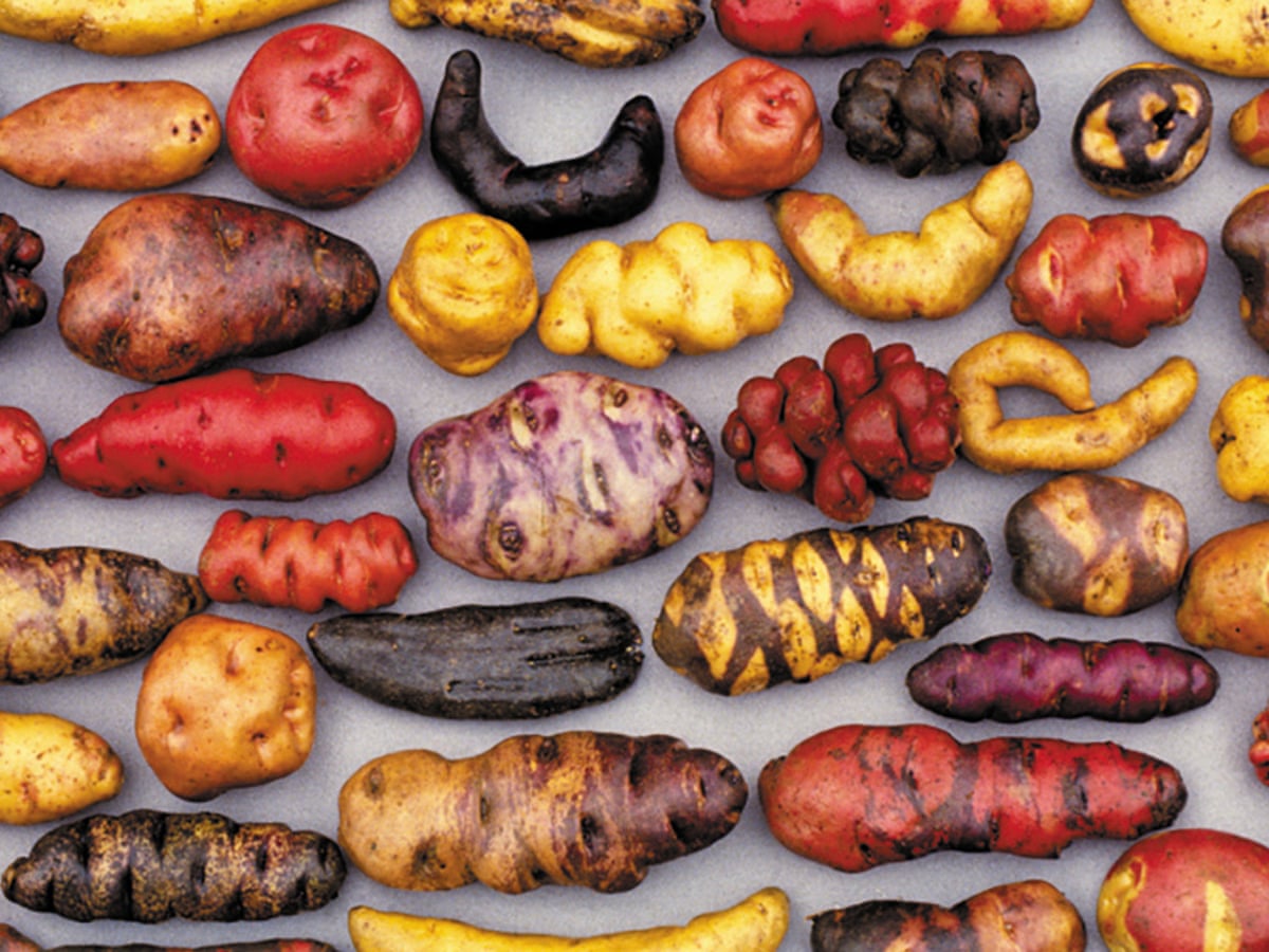 Поищите в сети "native Peruvian potatoes" . Это именно то , что могли привезти в Европу. На привычную нам картошку не очень похоже, да и на вкус она совсем не такая
