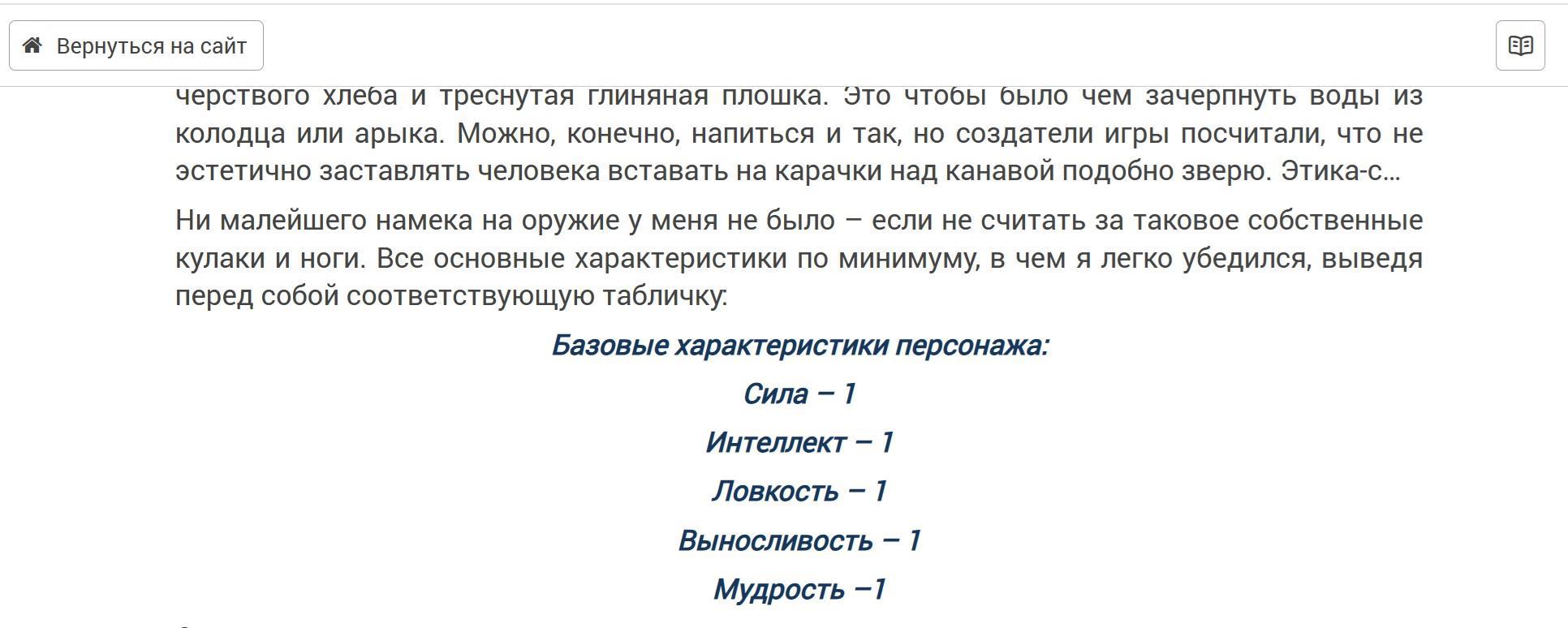 Со стороны читателя, я за то, что бы характеристик или оповещений системы было ровно столько, сколько более не убавить. Поэтому не собираюсь перегружать ими текст. Это скорее нужно для уточнения, что мир "игровой", со своими законами. Но на первом месте хочется видеть саму историю. Постараюсь не оплошать. Большое спасибо за ответ