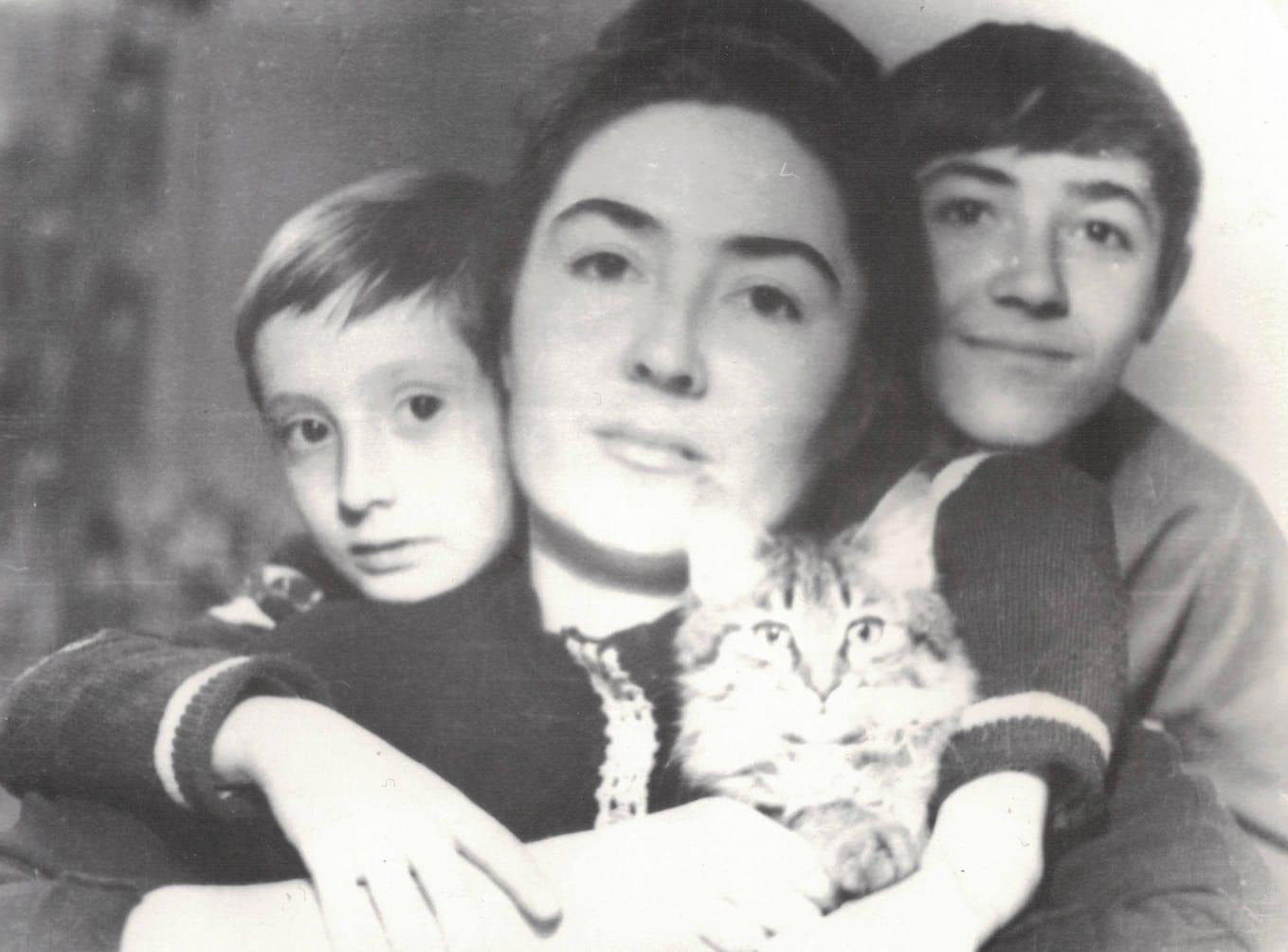 Это мы. Алишер - Саша, я, моя мама (его сестра) и наша кошка Мурка. Очень-очень давно
